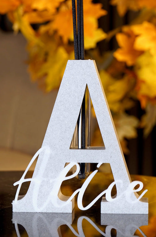 Una sola iniziale, un nome, una storia: questo diffusore trasforma la personalizzazione in un elemento d’arredo raffinato e dal forte impatto visivo.