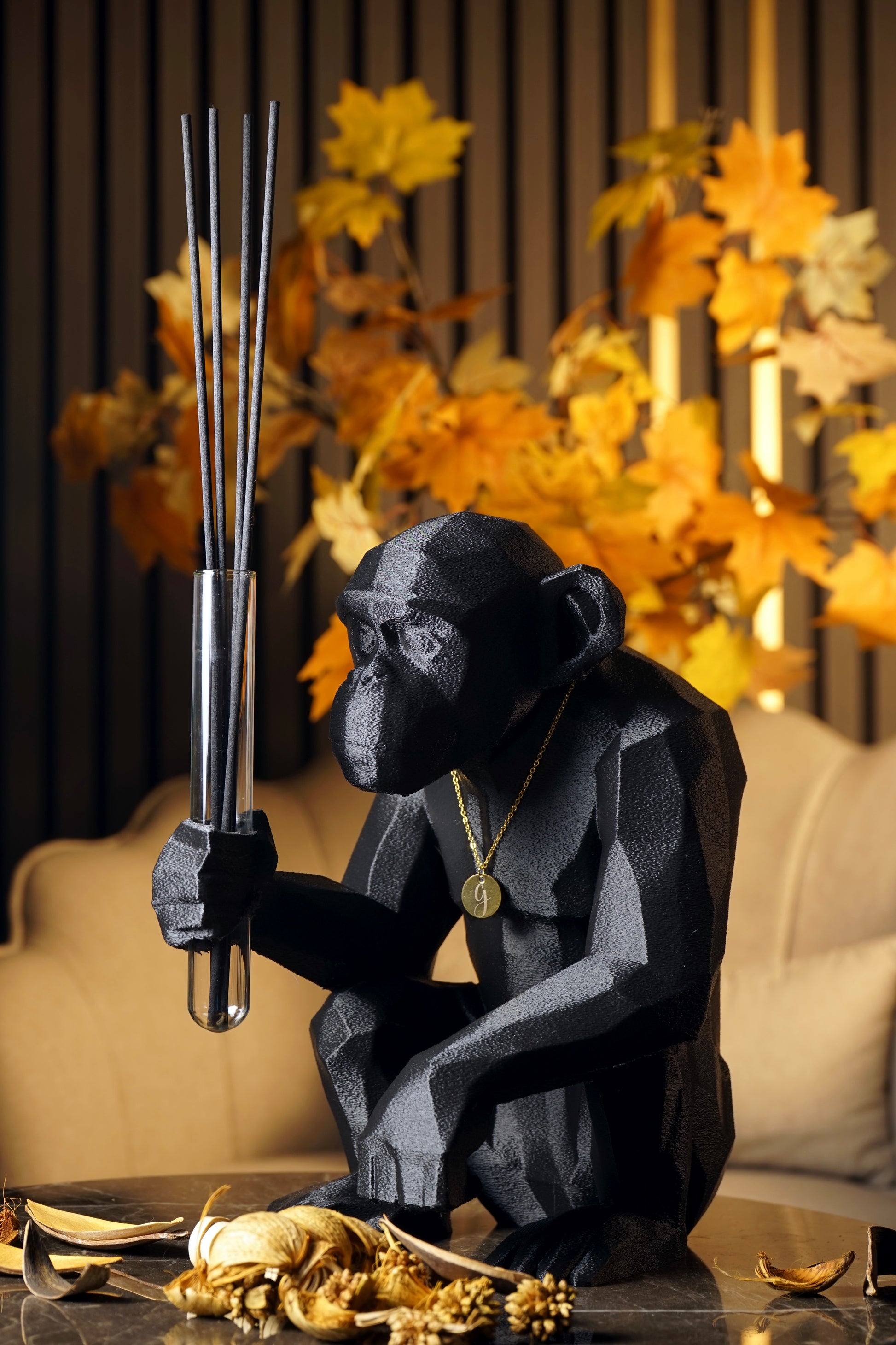 Uno sguardo vivace, linee forti e un carattere che spicca: questo diffusore cattura l’anima dello scimpanzé e la trasforma in un oggetto d’arredo contemporaneo e dal grande impatto visivo.