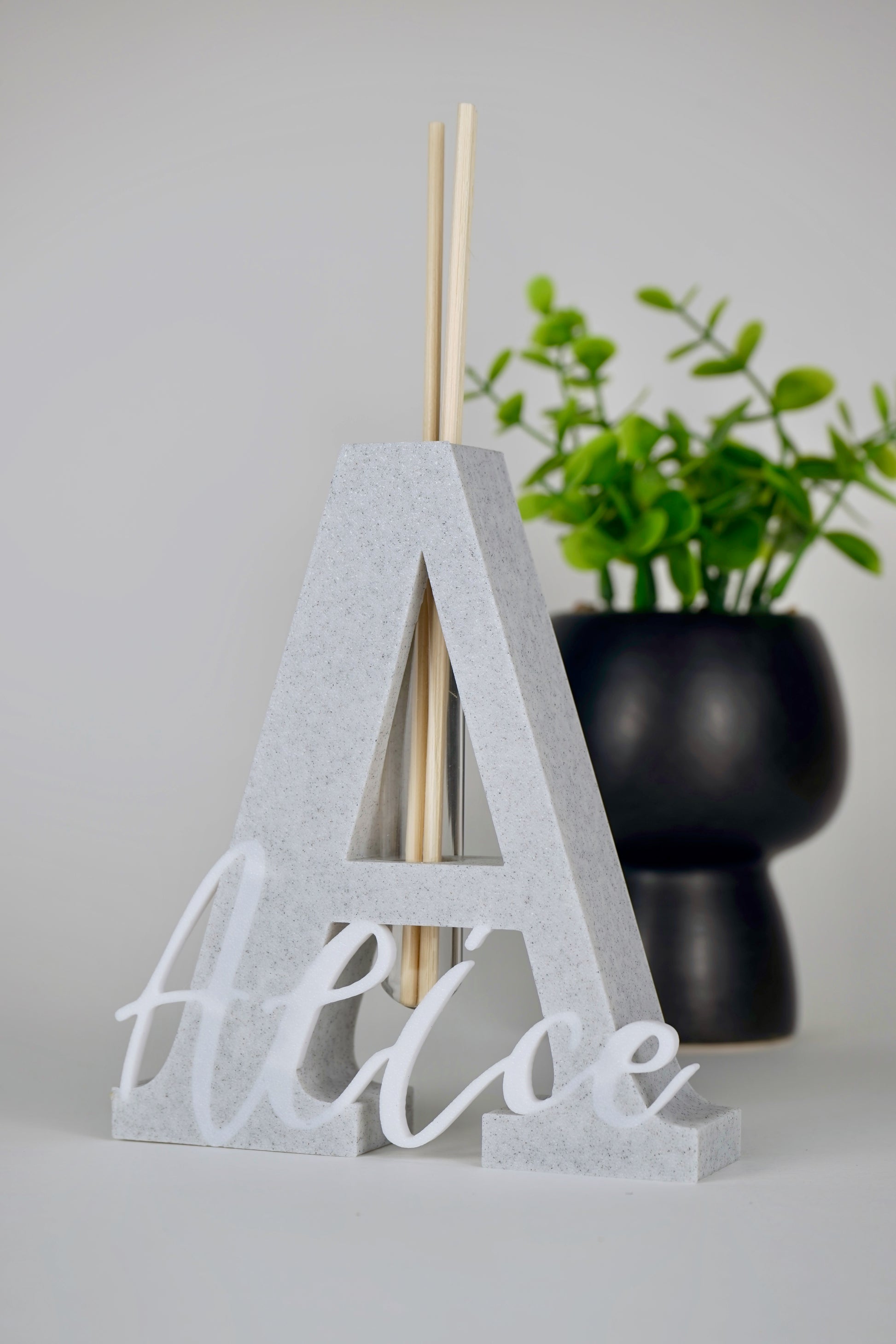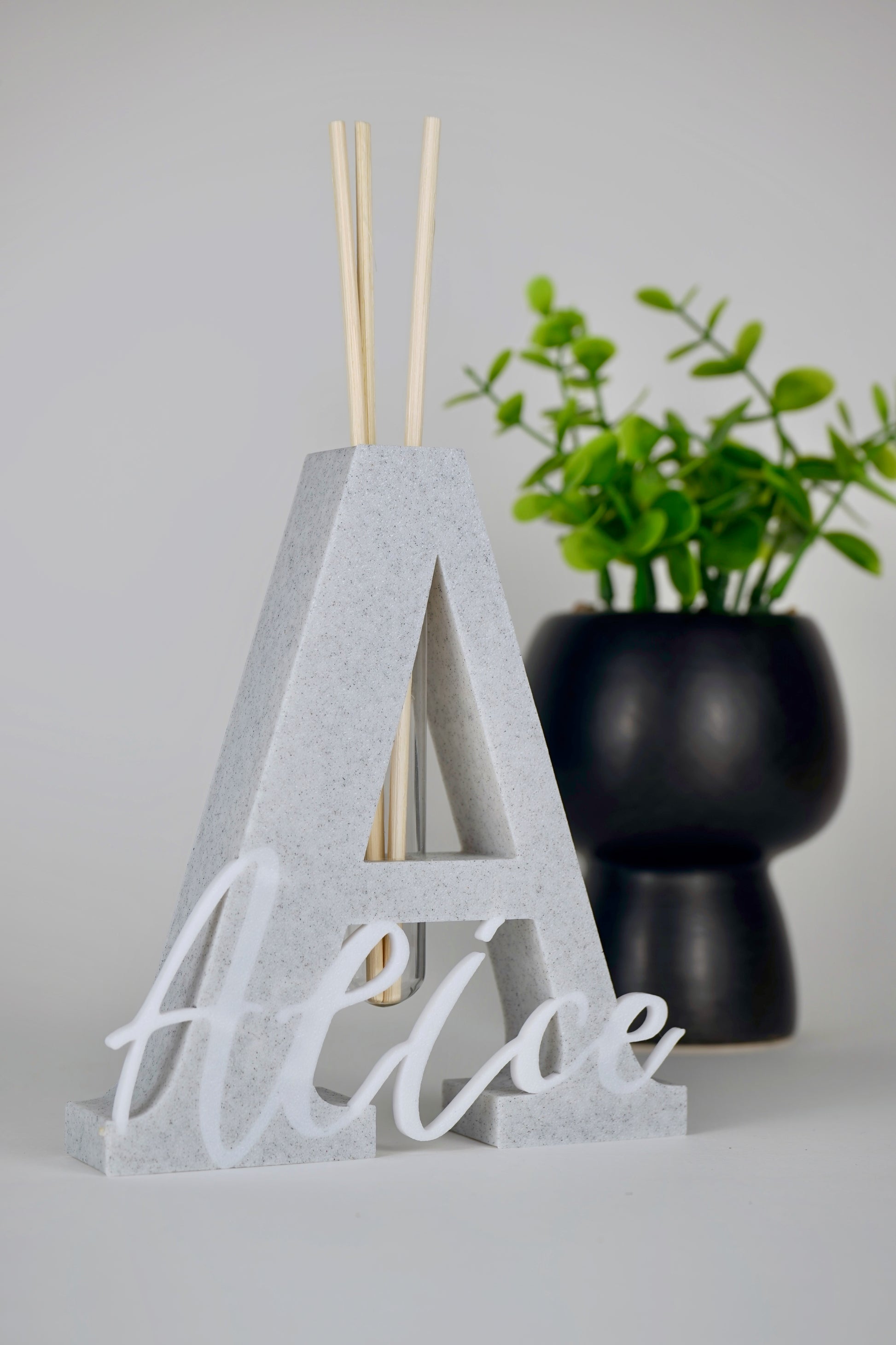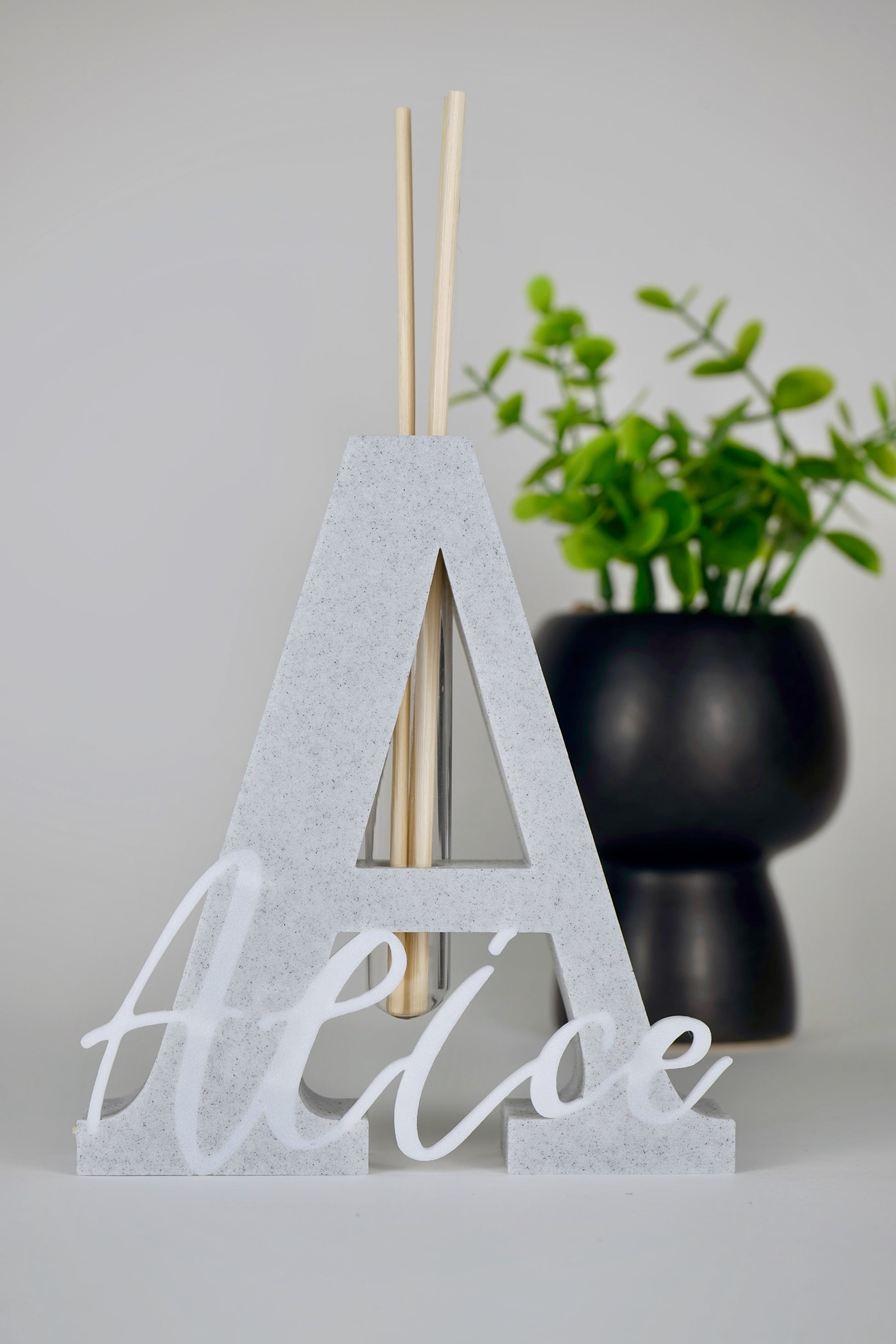 Questo diffusore d’ambiente è modellato a mano a partire dall’iniziale del nome, accompagnata dalla personalizzazione completa del nome stesso. Pensato per chi desidera un prodotto unico, elegante e profondamente personale.