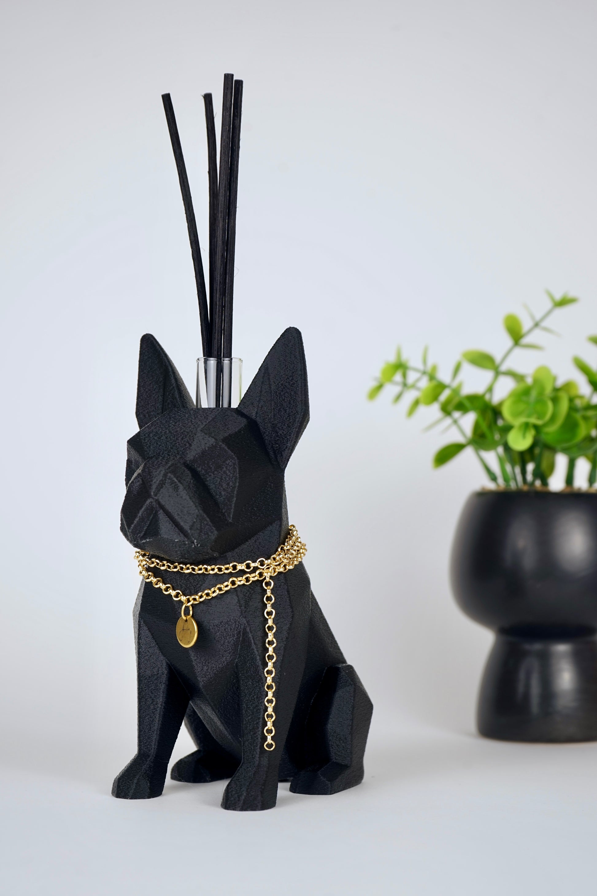 Questo raffinato diffusore raffigura un bouledogue francese dal carattere deciso e affettuoso, perfetto per dare personalità a qualsiasi ambiente. La catenella dorata, abbinata a un ciondolo inciso a laser con un nome, una data o una frase speciale, lo rende un oggetto unico e ricco di stile.