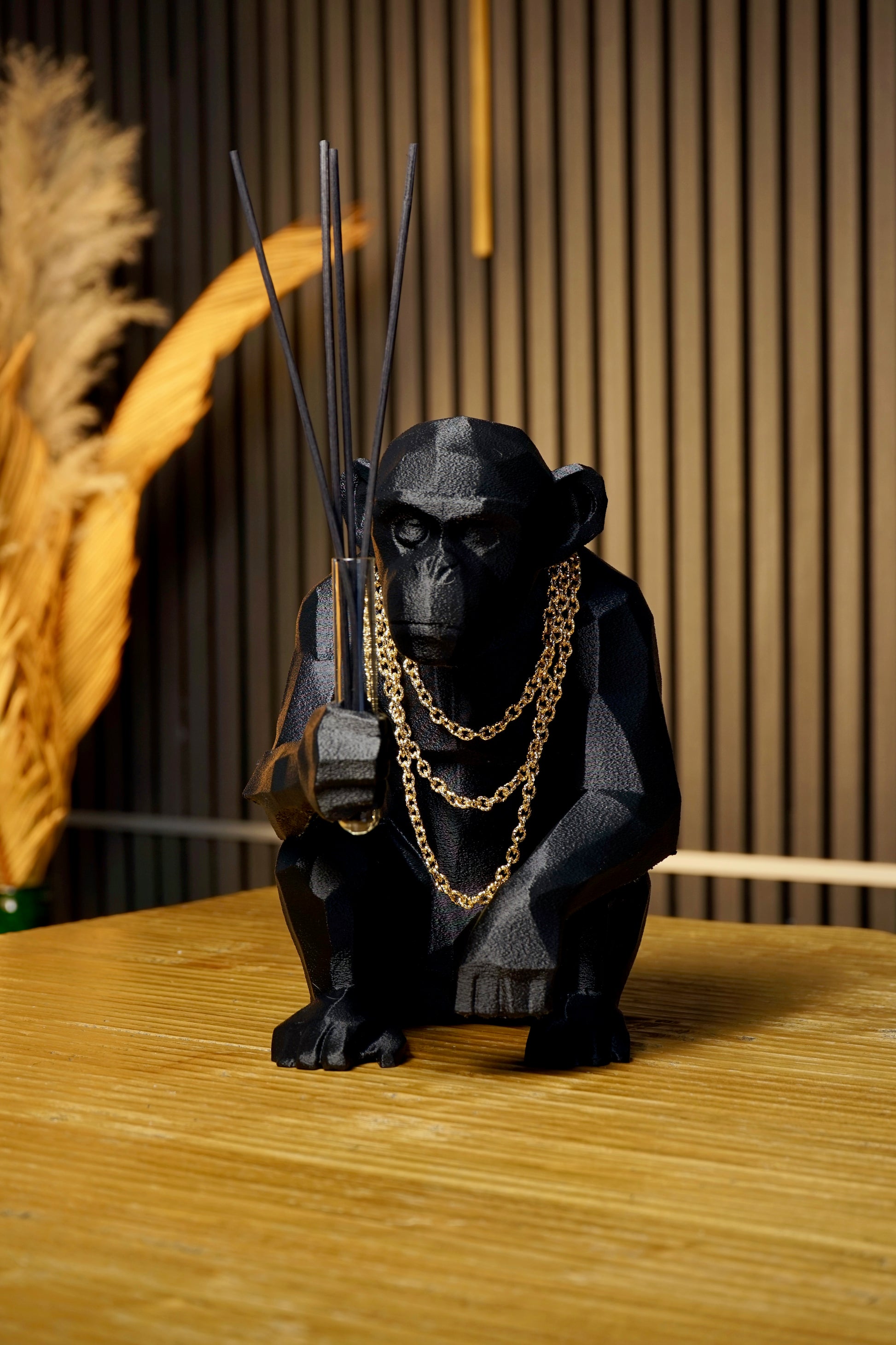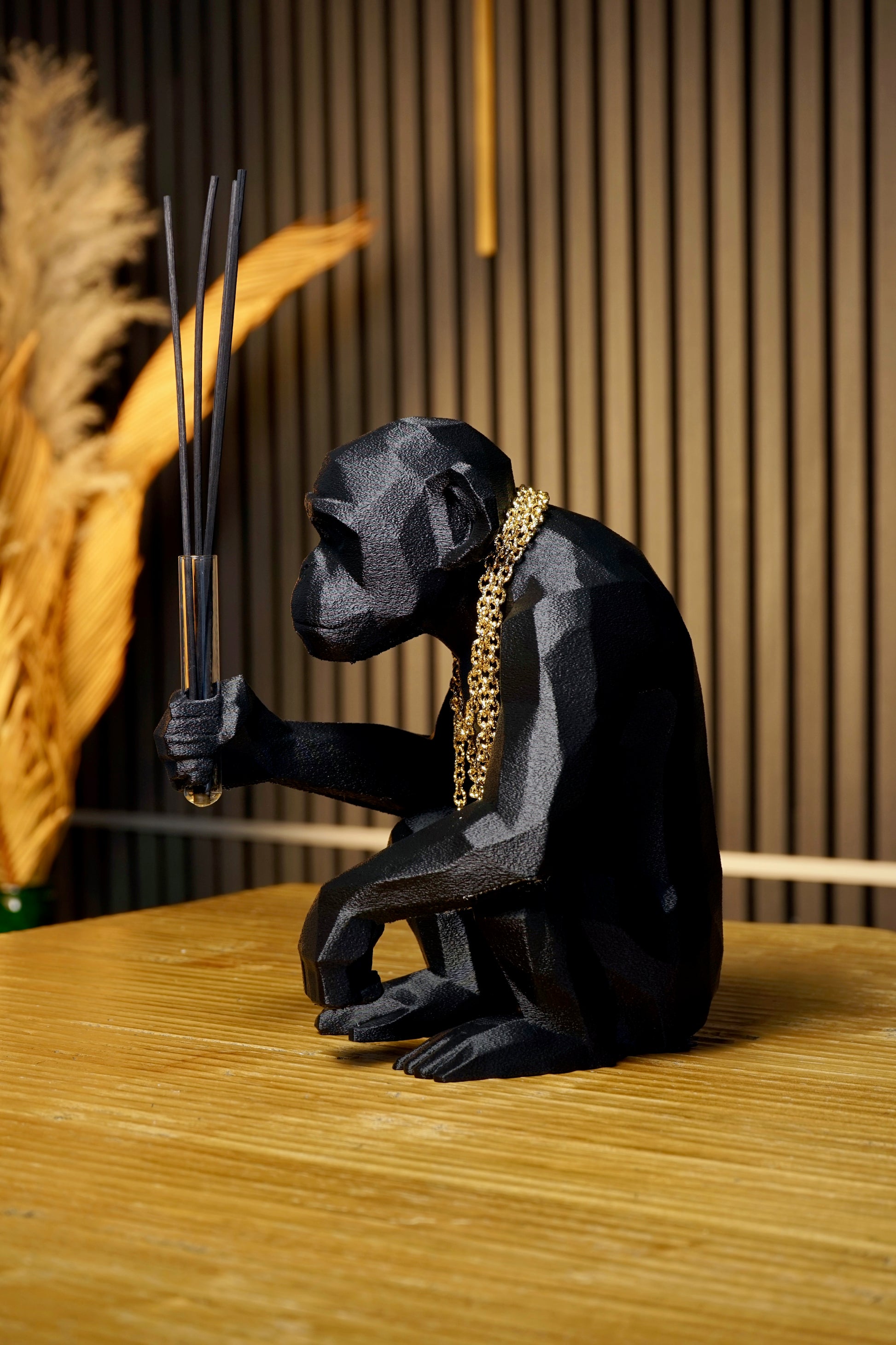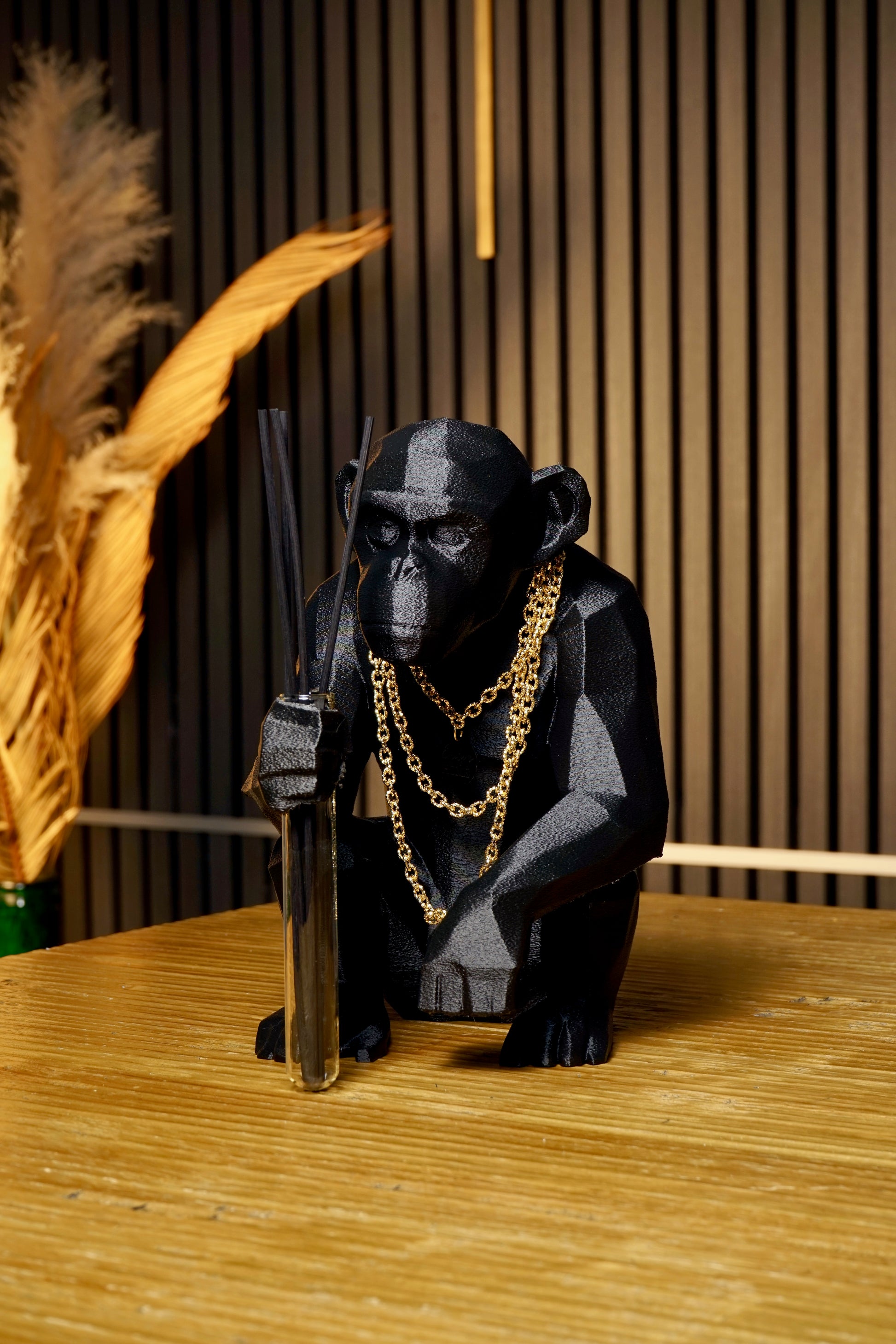 SIMIANE – Diffusore d’Ambiente a Forma di Scimpanzé con Catenella e Ciondolo Dorato Personalizzato