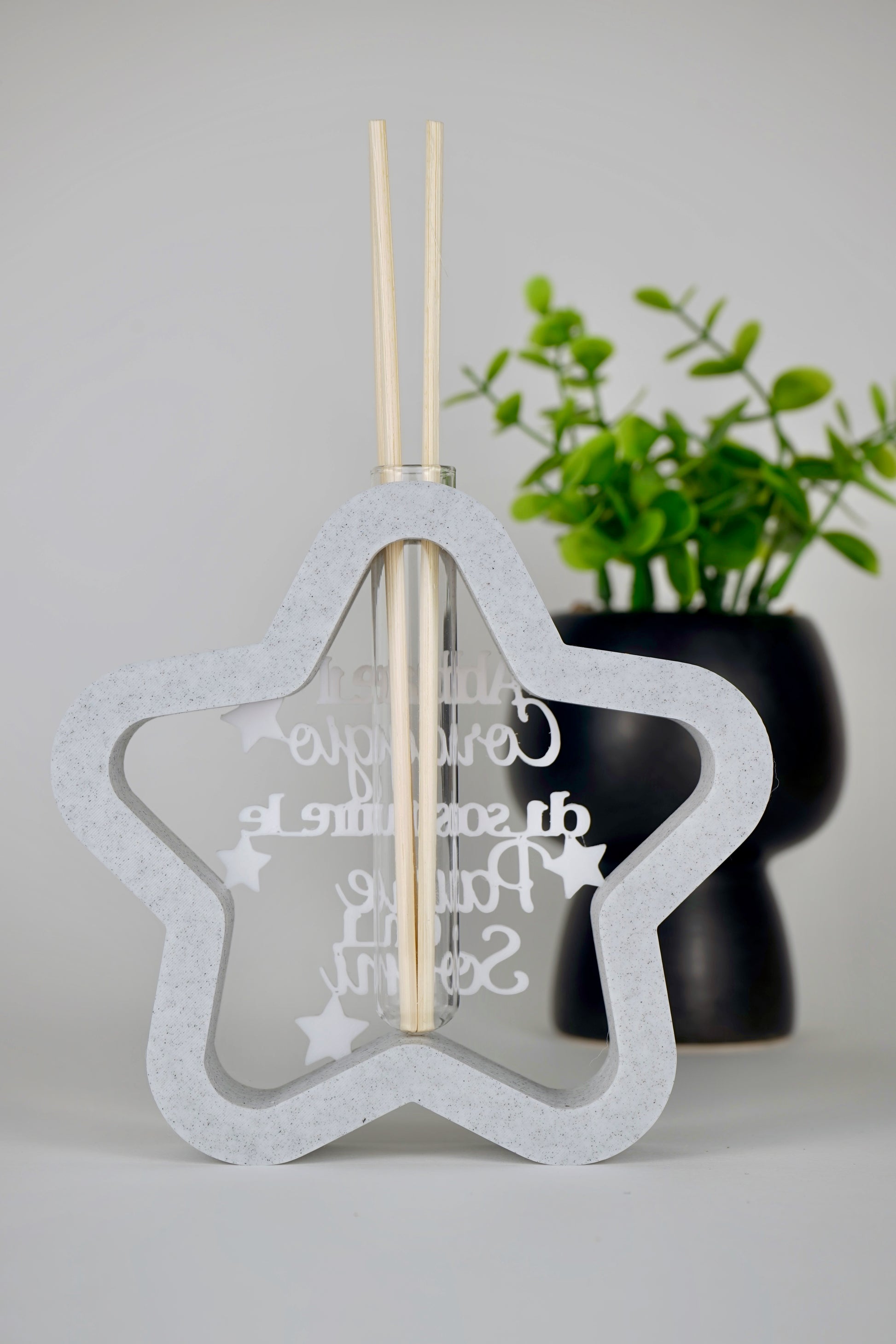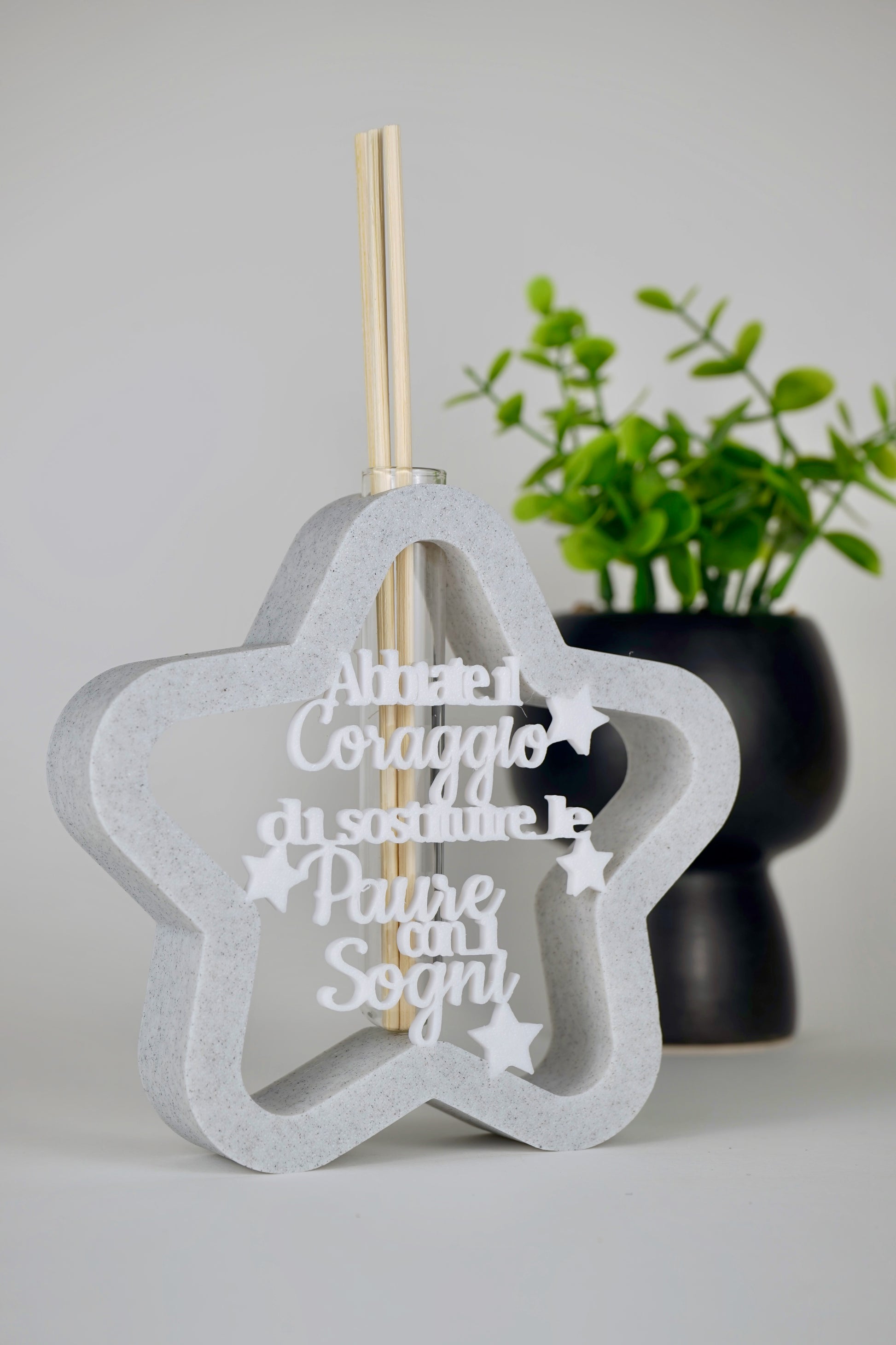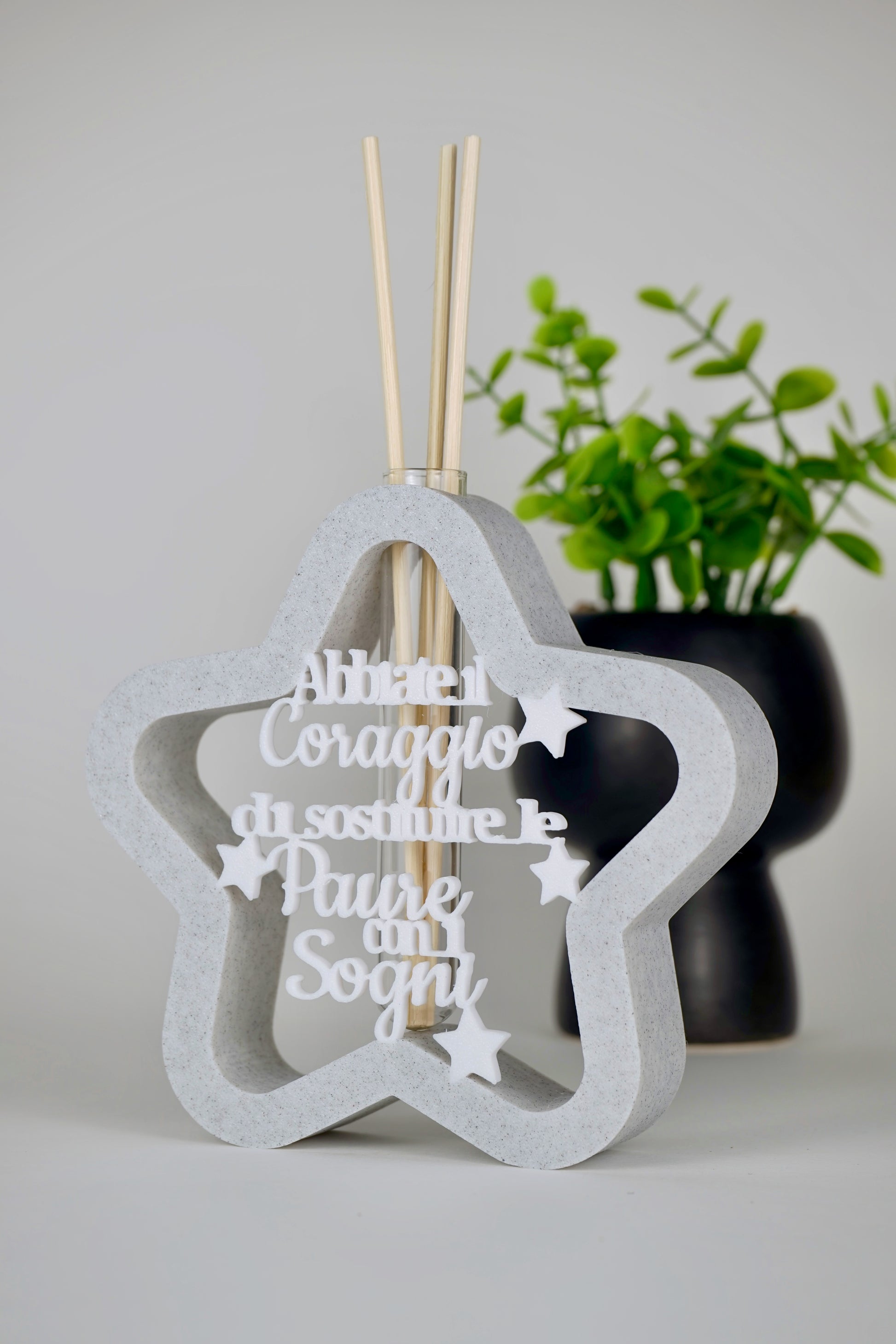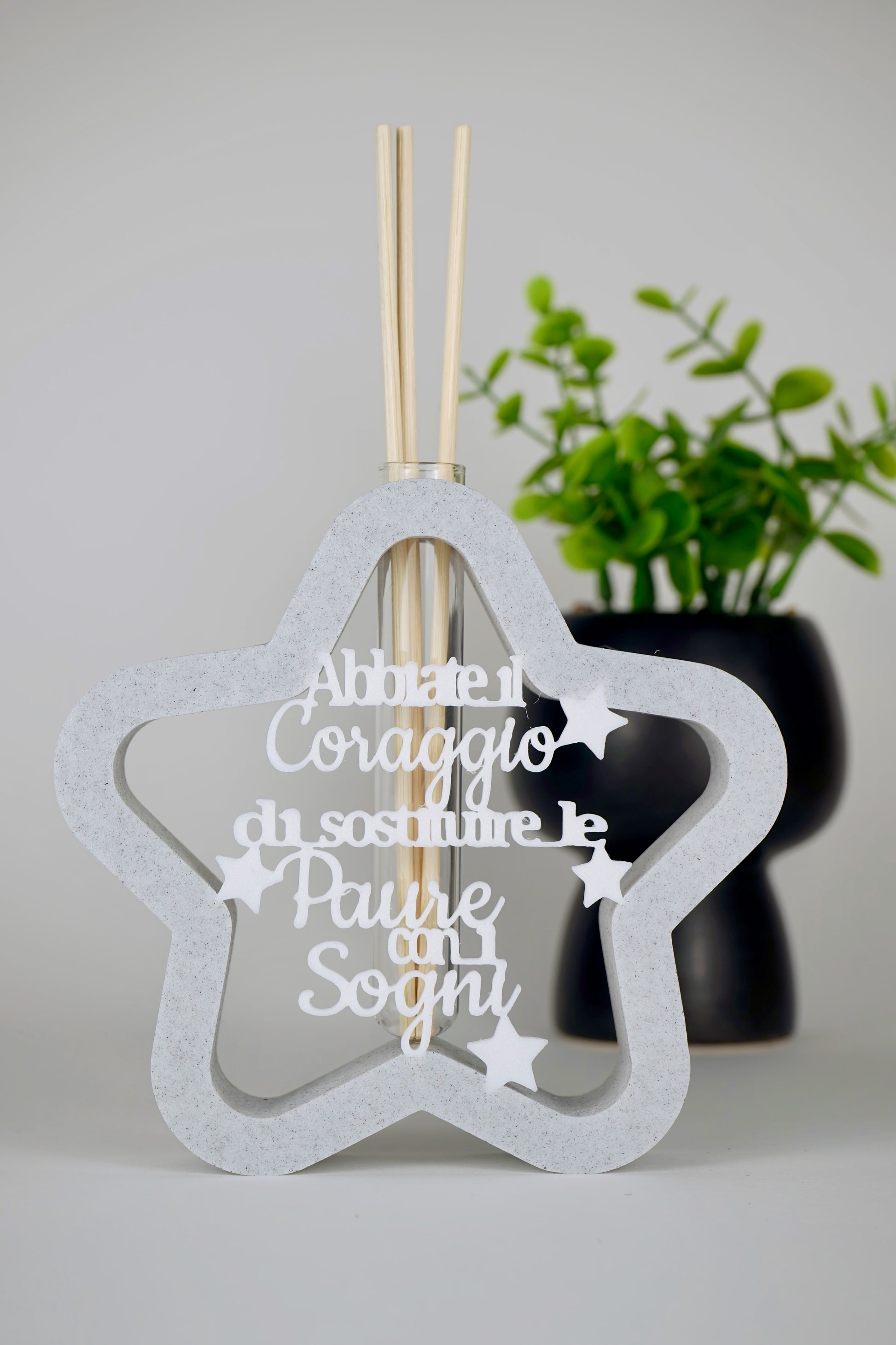 Elegante, simbolico e completamente personalizzabile, il diffusore a forma di stella è un oggetto decorativo artigianale progettato per unire stile e funzionalità.